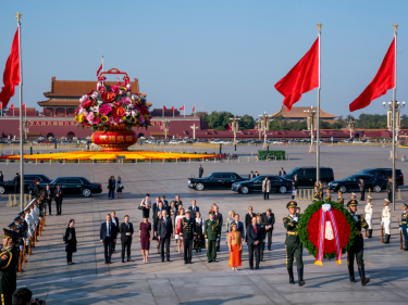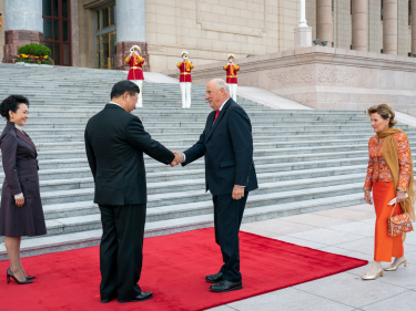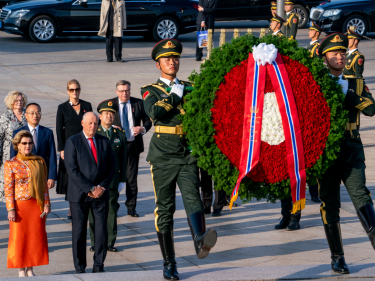 Deres Majesteter Kongen og Dronningen besøker Kina etter invitasjon fra Hans Eksellense President Xi Jinping. I dag ble de ønsket velkommen med en høytidelig seremoni utenfor Folkets store hall på Den himmelske freds plass.