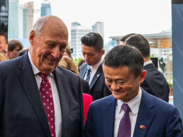 Kong Harald og Jack Ma - begge opptatt av blå bærekraft. Foto: Tim Haukenes