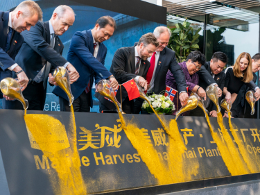 Det norske sjømatselskapet Marine Harvest var blant dem som markerte seg i dag. De har hovedkontor i Bergen og over 13 000 ansatte i 24 ulike land. I dag åpnet de en ny fiskeforedlingsfabrikk i Shanghai.