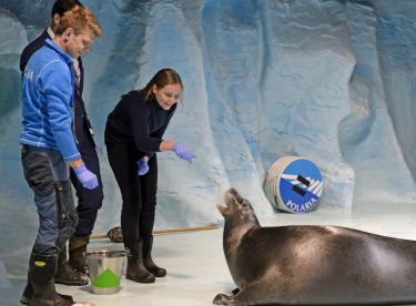 Prinsessen fikk mate sel på Polaria. Foto: Rune Stoltz Bertinussen / NTB scanpix
