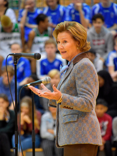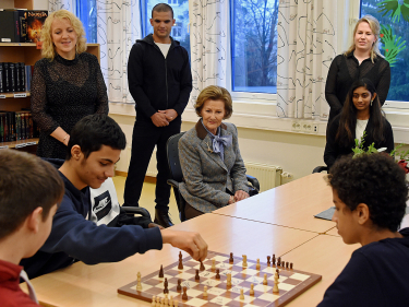 Dronning Sonja på Apalløkka ungdomsskole. Foto: Tore Meek / NTB scanpix