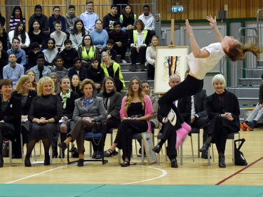 Skolens turnere viste sine kunster - og noen av ferdighetene vakte skrekkblandet fryd hos publikum. Foto: Sven Gj. Gjeruldsen, Det kongelige hoff