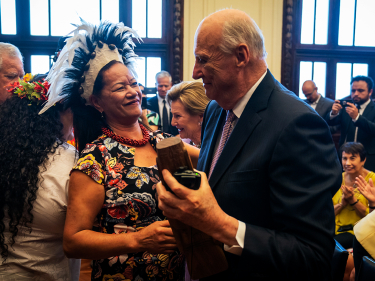 Kongeparets statsbesøk til Chile fortsatte i dag med både næringsliv og kultur på agendaen. Tilbakeføring av materiale Thor Heyerdahl brakte med seg fra Påskeøya, var en viktig del av programmet.