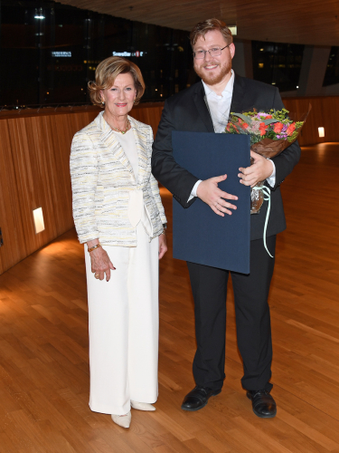 Dronninga overrekkjer andreprisen til barytonen Stefan Astakhov. Foto: Sven Gj. Gjeruldsen, Det kongelege hoffet