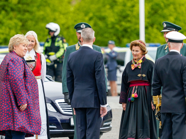 Kong Harald ankom Festningsplassen sammen med Hennes Majestet Dronningen og Deres Kongelige Høyheter Kronprinsen og Kronprinsessen.