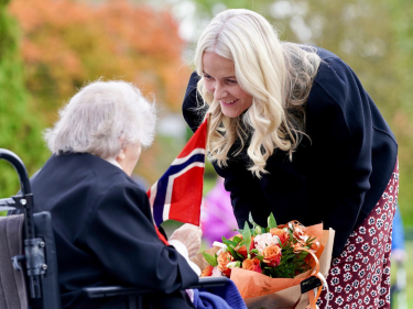 Kronprinsesse Mette-Marit snakker med en beboer ved Trøgstadheimen. Foto: Simen Løvberg Sund, Det kongelige hoff