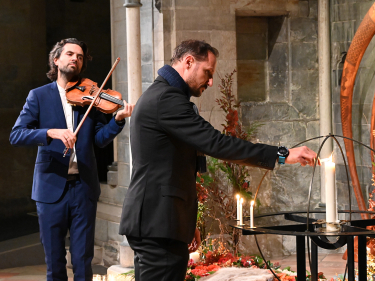 Dagens siste besøk gikk til nasjonalhelligdommen Nidarosdomen. Biskop Olav Fykse Tveit ga følget en omvisning i den vakre katedralen, før de tente lys ved det samiske alteret.