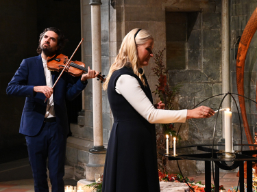 Kronprinsesse Mette-Marit tenner lys ved det samiske alteret i Nidarosdomen. Foto: Sven Gj. Gjeruldsen, Det kongelige hoff