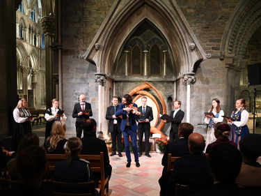 Det kongelige følget fikk oppleve en liten konsert ved det samiske alteret i Nidarosdomen. Foto: Sven Gj. Gjeruldsen, Det kongelige hoff