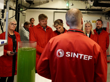 – Mange mener at alger og plankton er den nye oljen. Målet er å bidra til å bygge opp en ny biomarin industri i Norge. Det er enorme muligheter i havet og Norge har et stort fortrinn med den lange kystlinjen vår, sier senterleder og forskningssjef i SINTEF Ocean, Gunvor Øie. I dag var hun vert for det kongelige besøket til senteret, som er et samarbeid mellom NTNU og SINTEF.