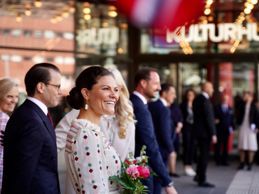På Kulturhuset i Stockholm møtte det kongelige følget barn til en samtale om bøker. Flere av forfatteren Anna Fiskes bøker er oversatt til svensk - blant annet "Hvordan man begynner på skolen", og Elias Våhlunds "Håndbok for superhelter" er utgitt i Norge. Både Fiske og Våhlund deltok i samtalen med barna i dag, og barna hadde lest bøkene på forhånd.