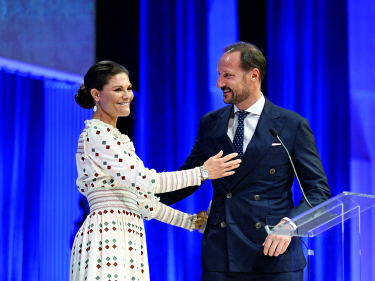 Både Kronprinsesse Victoria og Kronprins Haakon pekte på de store mulighetene som ligger i norsk-svensk samarbeid da de talte under åpningen av næringslivsseminaret "Norge og Sverige - sterkere sammen enn hver for seg". Foto: Pontus Lundahl/TT / NTB