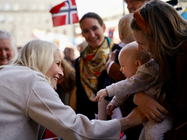 Utenfor Kulturhuset møtte Kronprinsparet barn og andre nordmenn bosatt i Stockholm. Foto: Simen Sund, Det kongelige hoff