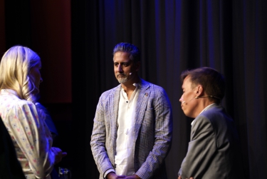 I kultursalen var det duket for en samtale mellom forfatterne Jan Grue, Abid Raja og Ella Marie Hætta Isaksen, ledet av skuespiller, komiker og programleder Lisa Tønne.