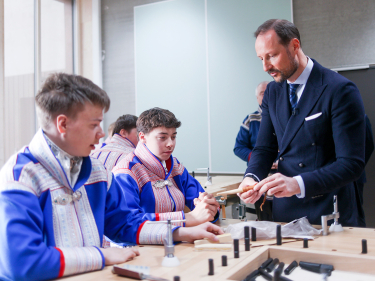 I Kautokeino møtte Kronprinsen både unge og eldre mennesker som på ulike måter ivaretar samisk kultur og tradisjoner. Han ville også gjerne høre hvordan det er å være ung same i Norge i dag, og besøket startet på den nybygde barne- og ungdomsskolen i Kautokeino.