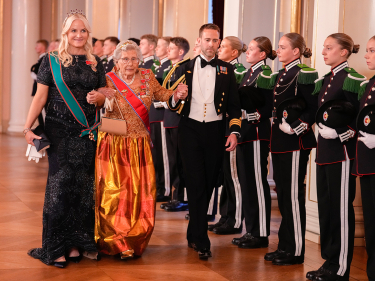 I sjukefråværet til Hans Majestet Kongen er Den Høgvørde Kronprinsregenten vertskap for besøket saman med Hennar Majestet Dronninga.