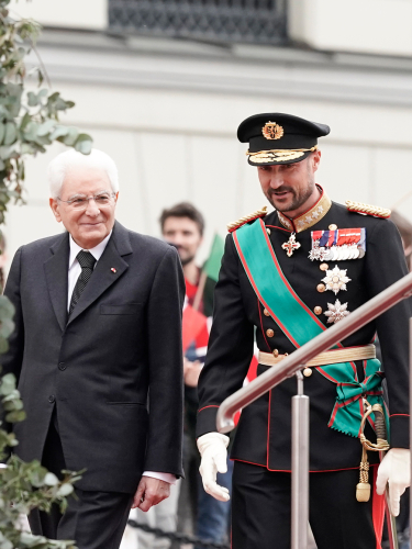 Det er tradisjon at besøkjande statsoverhovud legg ned krans ved nasjonalmonumentet på Akershus festning. I dag var det Italias president som viste norske falne under den andre verdskrigen denne æra. President Mattarella inspiserte òg æresgarden på Akershus, følgd av Kronprinsregenten.