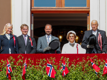 Nøyaktig klokken 10.30 kom Kongefamilien ut på Slottsbalkongen for å hilse barnetoget i Oslo. Det var riktignok én som manglet: Hennes Kongelige Høyhet Prinsesse Ingrid Alexandra er russ i år og feirer med kullet sitt.