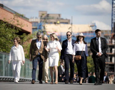 Etter lunsj ble det byvandring i Bjørvika - Oslos havneområde. Det kongelige følget fikk se norsk-danske løsninger på framtidens byrom, ledsaget av Oslos ordfører Anne Lindboe og danske Christian Pagh, direktør for Oslo arkitekturtriennale. Underveis møtte de arkitekter og andre aktører engasjert i de ulike prosjektene.