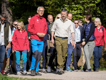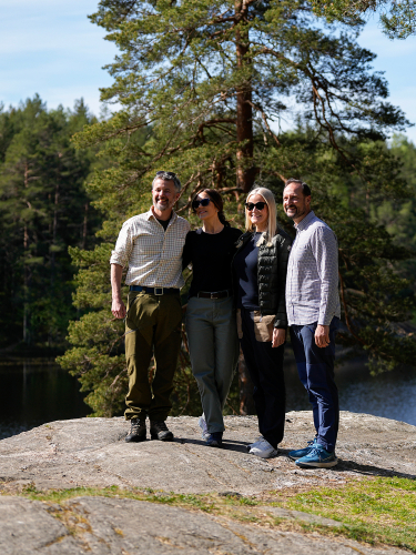 Kronprinsparet og DNT tok Kong Frederik og Dronning Mary med på tur rundt Ulsrudvannet i Østmarka. Foto: Lise Åserud / NTB