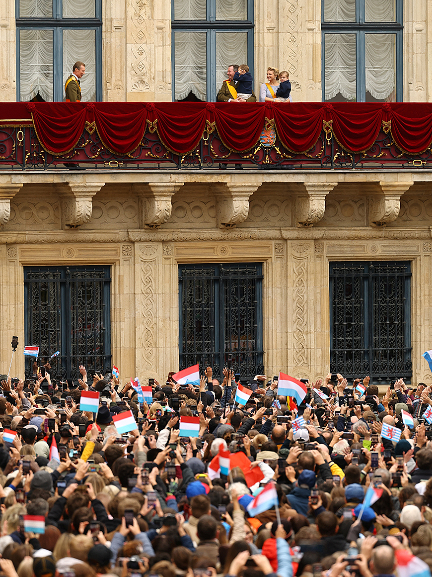 Mange var møtt fram foran storhertugpalasset i Luxembourg for å hedre det nye storhertugparet. De fikk også muligheten til å takke Storhertug Henri og Storhertuginne Maria Teresa for deres innsats gjennom 25 år da de sluttet seg til Storhertug Guillaume og Storhertuginne Stéphanie på slottsbalkongen.