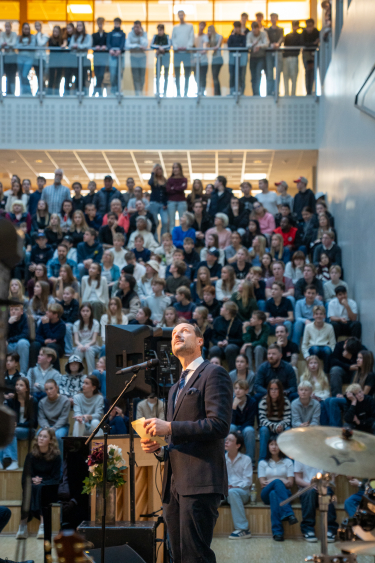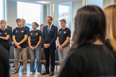 Hans Kongelige Høyhet Kronprins Haakon besøkte i dag Skaun i Trøndelag for å dele ut Dronning Sonjas skolepris 2025. Sammen med kunnskapsminister Kari Nessa Nordtun overrakte han prisen til Skaun ungdomsskole, som er årets mottaker.