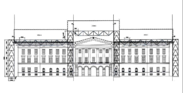 Taket over Slottets hovedfløy rehabiliteres. Et frittstående tak på åtte pillarer beskytter Det kongelige slott under arbeidet.
