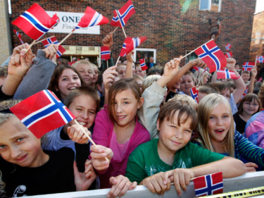 Kongen og Dronningen fikk også hilse på flere norske elever ved skolen, og se et kort teaterinnslag om etableringen av Luther. Talen Kong Harald holdt på Luther College i dag, var den første på denne reisen, og Kongen benyttet anledningen til å takke det amerikanske folk for deres deltakelse etter terrorhandlingene 22. juli: