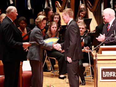Under en høytidelig seremoni i skolens festhall, ble Kong Harald og Dronning Sonja overrakt the Spirit of Luther Award.