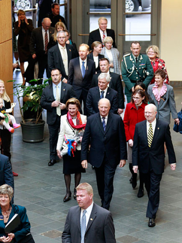 Hans Majestet Kong Harald og Hennar Majestet Dronning Sonja heldt fram reisa si i Midtvesten i dag, med besøk til St. Olaf College i Northfield og Mayo Clinic i Rochester, Minnesota.