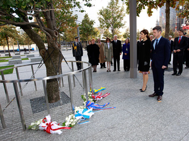I de to dype «fotavtrykkene» der tvillingtårnene sto, finnes i dag vannfall omgitt av ofrenes navn satt i bronse. Et annet hovedelement i parken er de 200 eiketrærne, hvorav ett – «the Survivor Tree» - faktisk overlevde 11. september-angrepet. Nordiske statsoverhoder er samlet i New York i anledning markeringen av the American Scandinavian Foundations 100-årsjubileum, og i formiddag la de ned hver sin bukett hvite roser ved foten av the Survivor Tree: