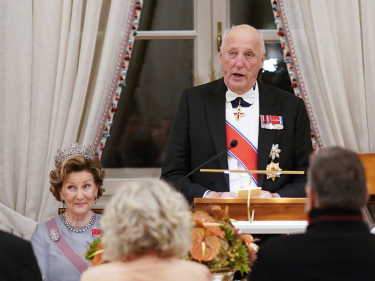 Dronningen og jeg er dermed svært glade for endelig å kunne ønske dere alle hjertelig velkommen hit til oss på Slottet!