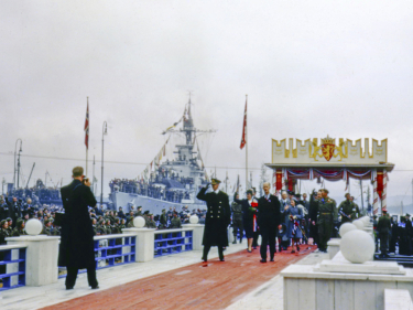 Denne dag har vært en dag som både jeg og regjeringen så frem til den 9. april. Den dag fikk vi valget mellom å stå som grunnlovens forsvarere eller å bøye oss. Det er meg en stor glede å kunne si at det var ikke tvil hos mine rådgivere, da vi stod overfor det spørsmål. Vi var alle sammen helt på det rene med at vårt forsvar ikke kunne i lang tid stå imot verdens sterkeste hærmakt. Men vi ville se våre etterkommere i øynene. Vi ville si: Vi gjorde det vi kunne. Det var med den beslutning at vi nektet å ta imot det tyske forslag. Og hva senere hendte gjennom krigens år, det er historisk allerede. Det var en meget tung dag den dag da vi skulle fatte den beslutning at vi måtte forlate landet. Vi stod overfor det at hvis vi ble i landet, da ville vi bli fanger. Vi ville være fanger og ikke representere det fri Norge. Av den grunn var vi nødt til å fortsette vårt arbeid for Norges frihet utenfor landet.